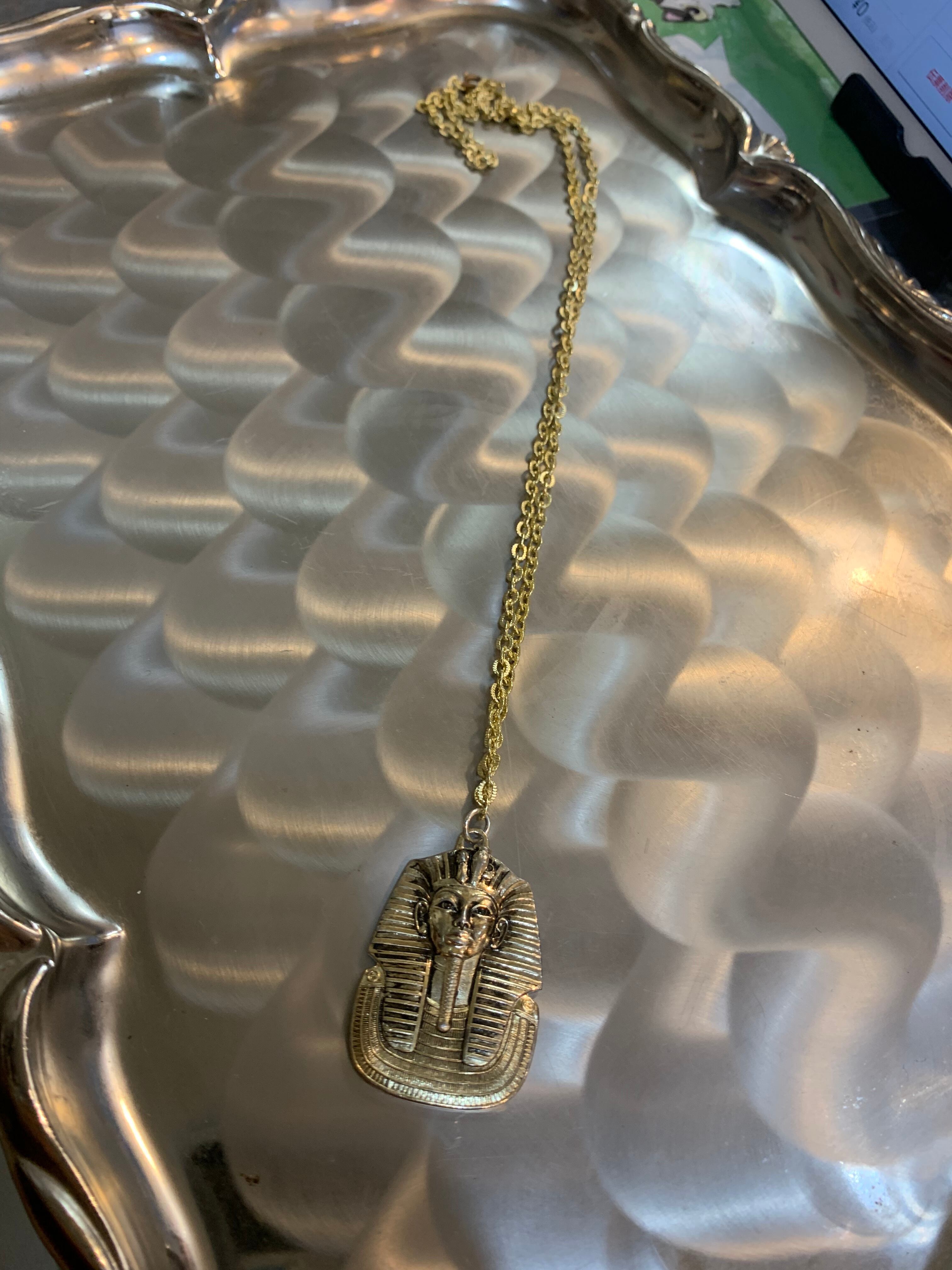 1965年に上野国立博物館で行われたツタンカーメン展の記念ネックレスです。当時所有者の名前が刻まれているのもまた乙です。