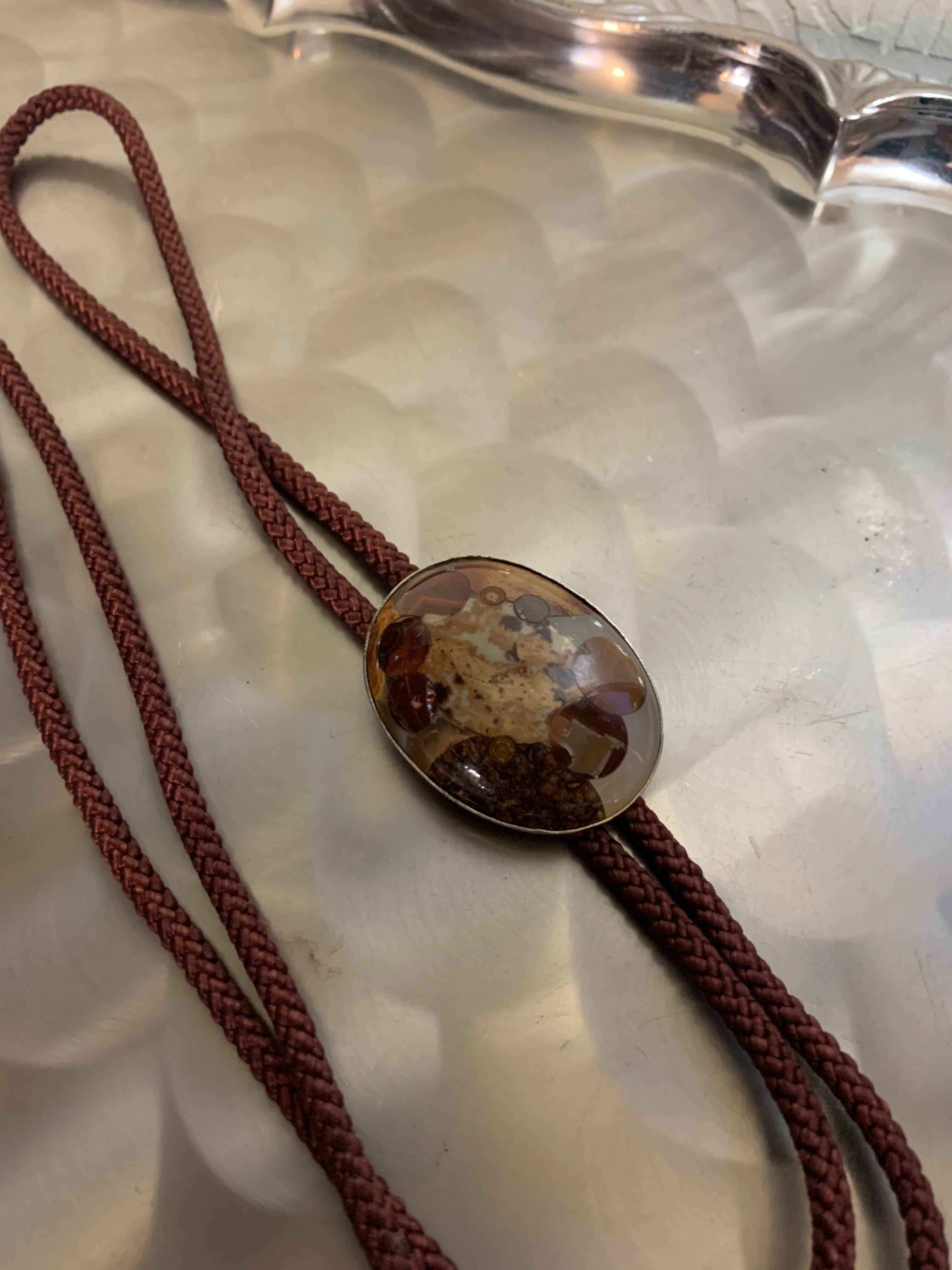 大きめのマーブル石が付けられたループタイ。